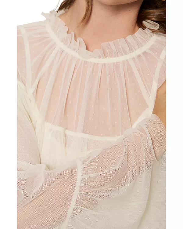 Сетчатая ткань с точечным рисунком, оборки на плечах