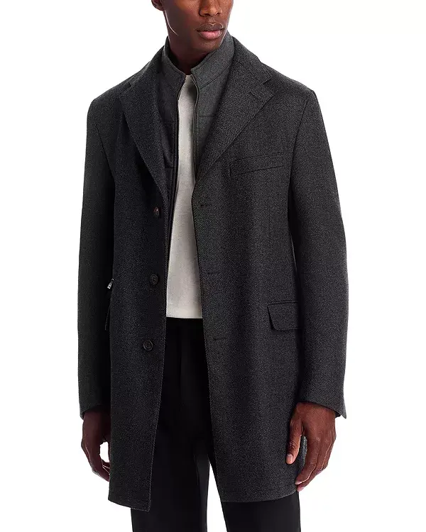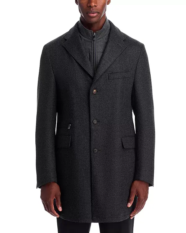 Пальто-Бикини в елочку Corneliani, серый