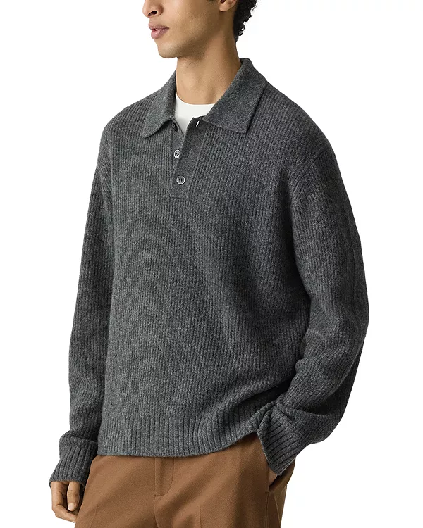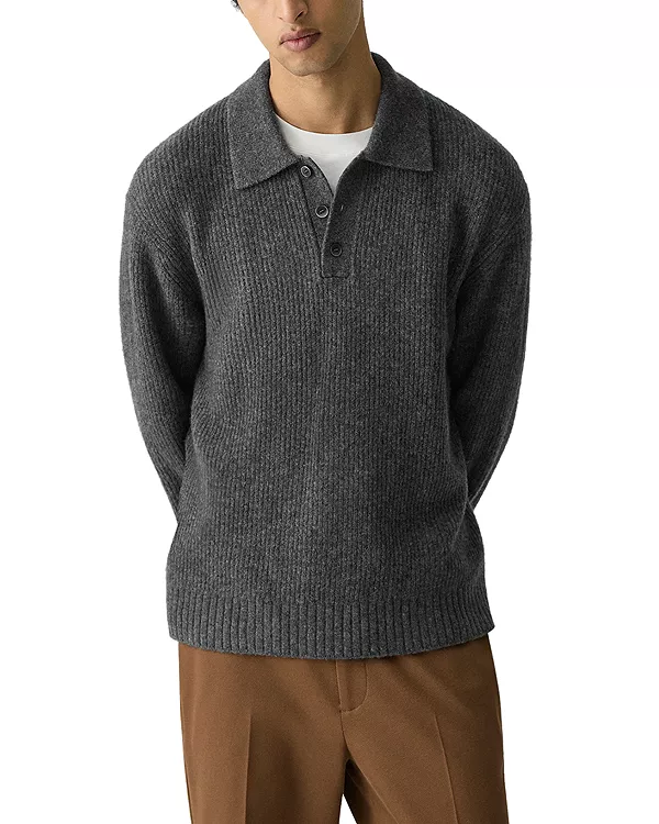 Ребристый поло-свитер с длинными рукавами Theory, серый