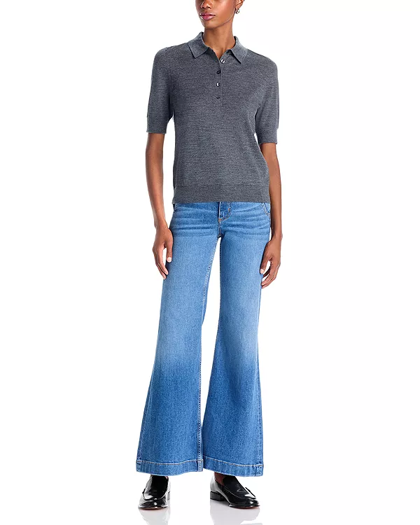 Особенности: Отложной воротник Короткие рукава Модель пуловера с частичной застежкой на пуговицы спереди Импортный товар
