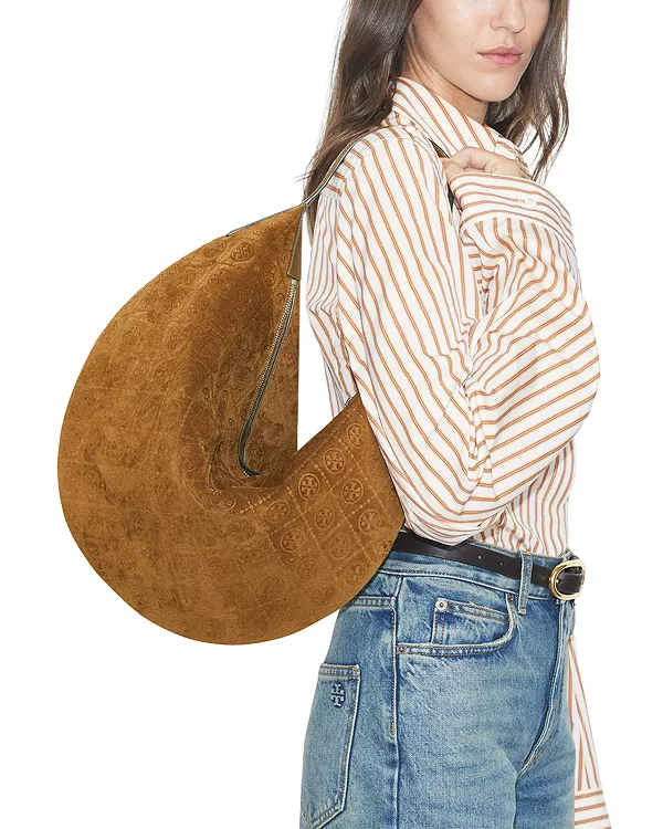 Сумка-Хобо из замши с монограммой Т. Tory Burch, коричневый 56 437₽