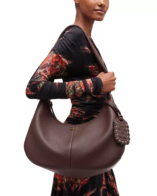 Сумка-Хобо среднего размера Ganni, коричневый 75 952₽