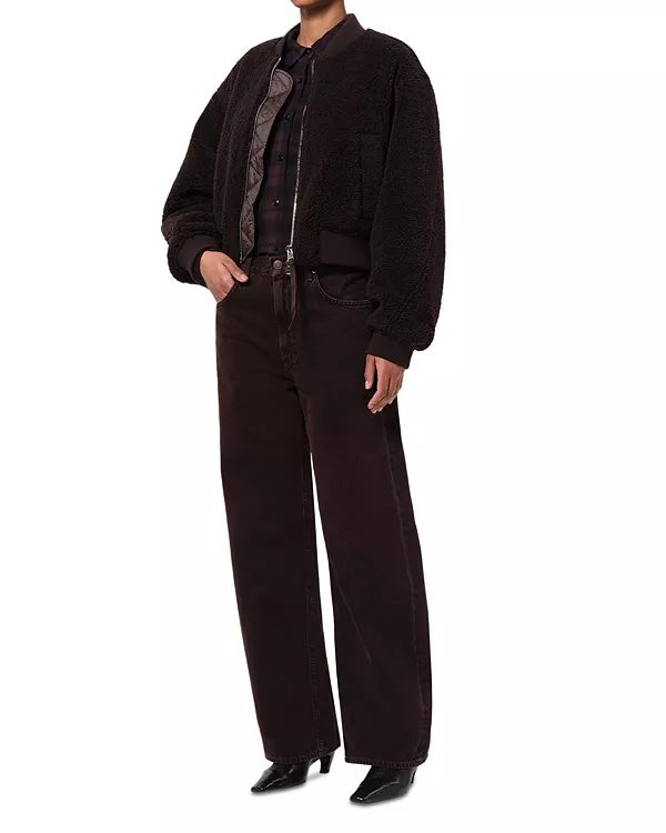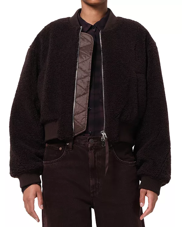 Бренд: Agolde Цвет: коричневый Куртка AGOLDE Iona Skye - это современная интерпретация бомбера, укороченного силуэта с объемными рукавами и застежкой-молнией спереди. Изготовленная из ультрамягкой искусственной овчины, она одновременно уютная и изысканная.
