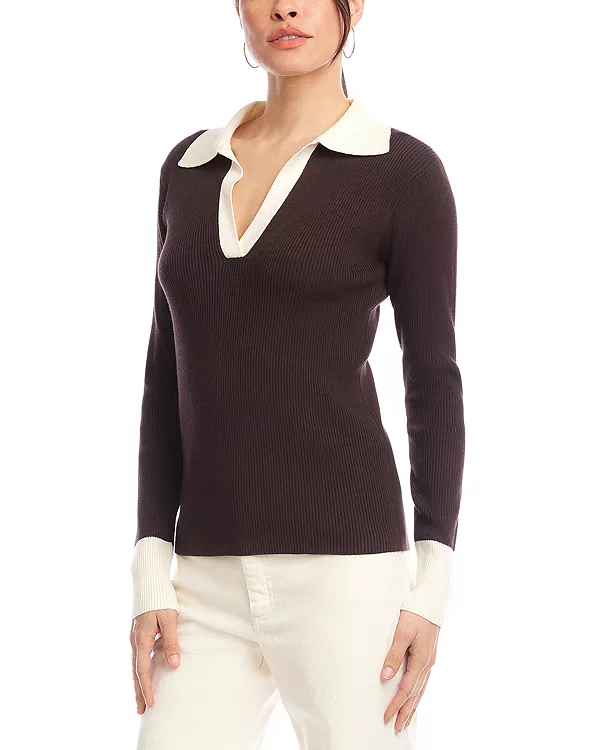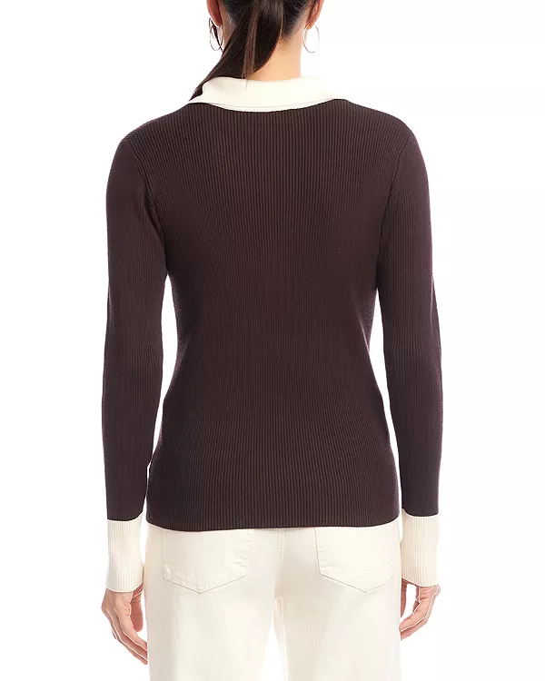 Свитер с воротником в рубчик Karen Kane, коричневый