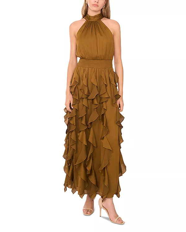 Длинное платье с оборками и каскадным ниспадающим подолом 1.State, бежевый 10 532₽