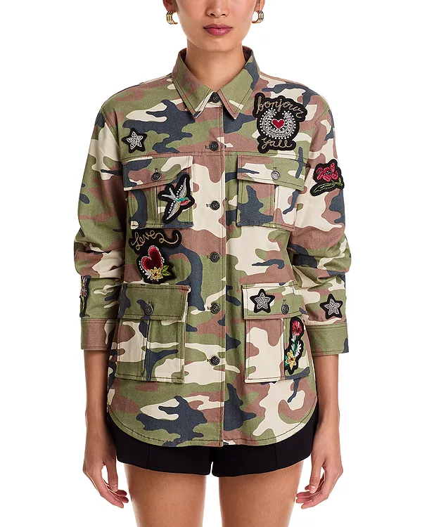 Камуфляжный принт по всей поверхности, декоративные нашивки
