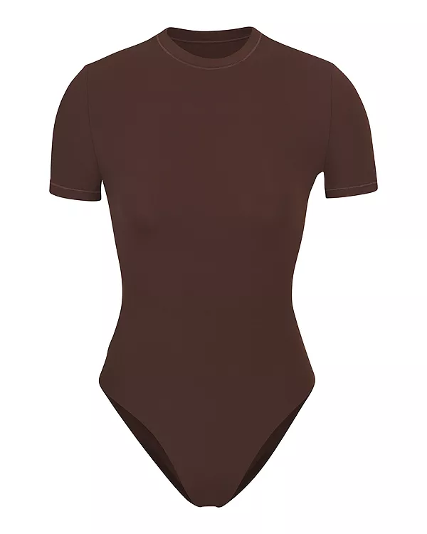 Как ваша любимая футболка, но лучше! Этот облегающий боди с короткими рукавами выполнен из невероятно мягкой ткани, имеет высокий круглый вырез и короткую спинку для комфортной посадки.