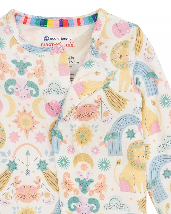 Магнитные застежки: магниты расположены вдоль шва от шеи до верхней части бедра для размеров до 0-3 месяцев и от шеи до промежности для размеров от 3-6 месяцев и старше