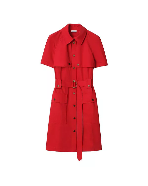 Бренд: Burberry Цвет: красный Платье с короткими рукавами из шерстяной саржи ярко-красного цвета, созданное в рамках нашей капсульной коллекции «Год Лошади». Вдохновленное нашей традиционной одеждой для дождливой погоды, это платье отличается фирменными деталями, такими как откидная планка и защитный козырек сзади. Модель имеет накладные карманы, прямой крой и регулируемый пояс с пряжкой в виде буквы B, выполненный из состаренной латуни.
