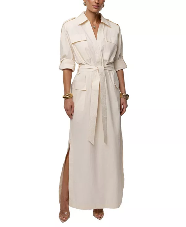 Длинное платье с поясом в стиле «гаваньский берег» Jluxlabel, белый