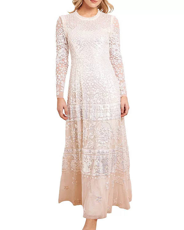 Платье «Аврора» с длинными рукавами и круглым вырезом Needle & Thread, белый 90 693₽