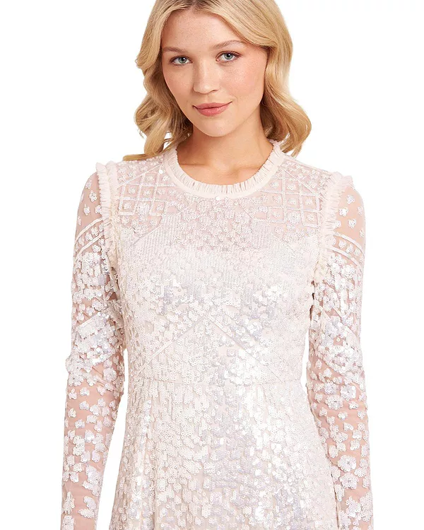 Платье «Аврора» с длинными рукавами и круглым вырезом Needle & Thread, белый