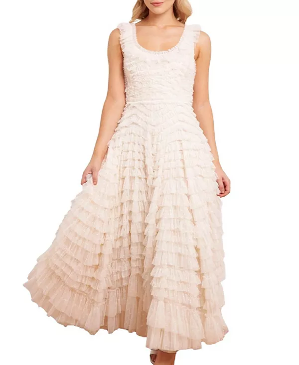 Платье Хэтти с вырезом-лодочкой и длиной до щиколотки Needle & Thread, белый 70 931₽