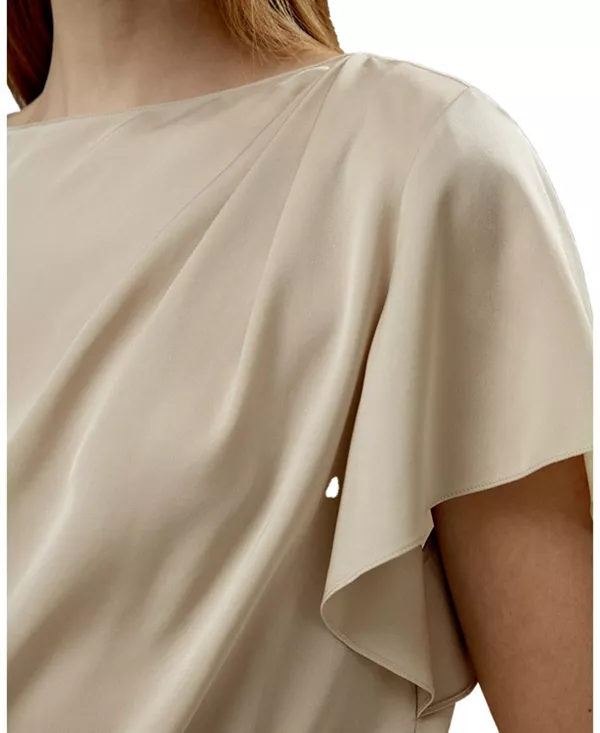 Окунитесь в мир моды, где комфорт сочетается с элегантностью. Тщательно продуманный дизайн с изысканным вырезом-лодочкой, волнистыми рукавами «летучая мышь», эластичной резинкой по низу и искусно выполненными швами - этот топ станет ярким акцентом в любой обстановке.