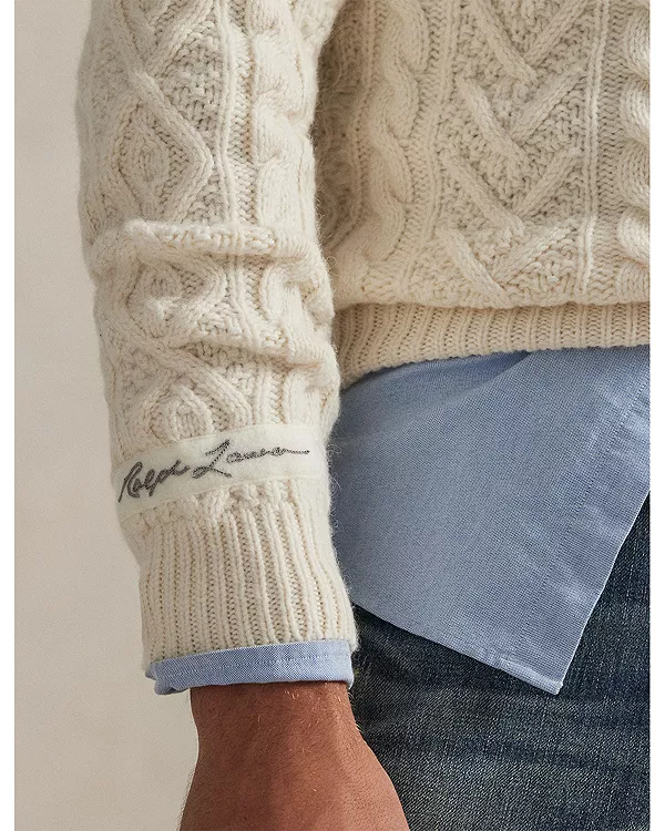 В детстве, живя в Бронксе, мистер Лорен обожал ходить на стадион «Янки», чтобы посмотреть, как играют его земляки. Этот свитер унисекс посвящен давней любви мистера Лорена к команде «Бронкс Бомберс» и бейсболу. На нем красуется войлочная нашивка с логотипом «Нью-Йорк Янкиз» и вышивка «Ральф Лорен». Выполненный в классическом стиле арановой вязки, он сшит из мягкой смеси шерсти и шерсти альпаки.