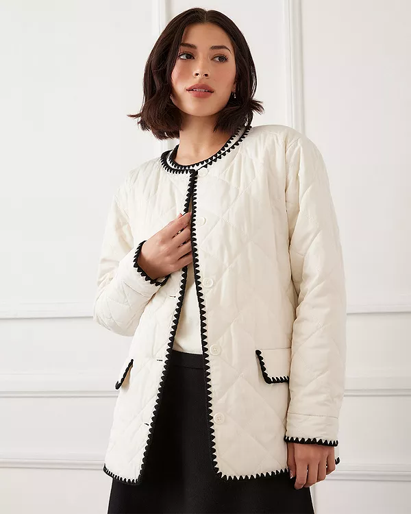 Стеганая куртка с окантовкой Karen Kane, белый
