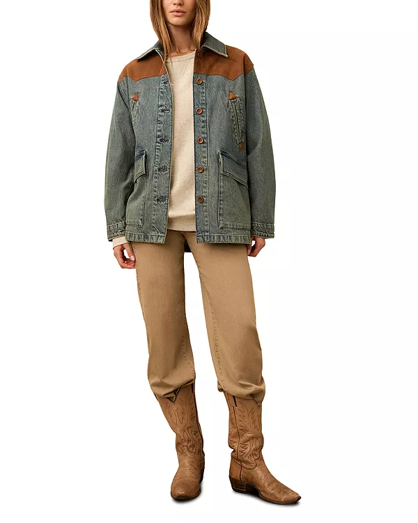Джинсовая замшевая куртка с рельефной спинкой Faherty, синий 44 471₽