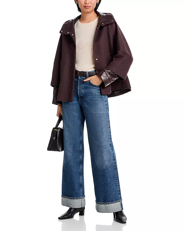 Рукава-летучая мышь длиной три четверти с удлиненными манжетами из контрастной ткани со стежкой