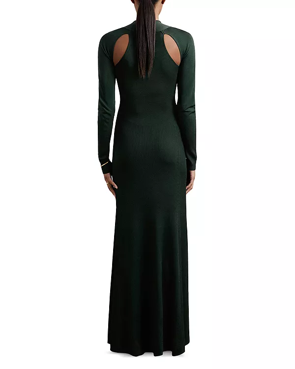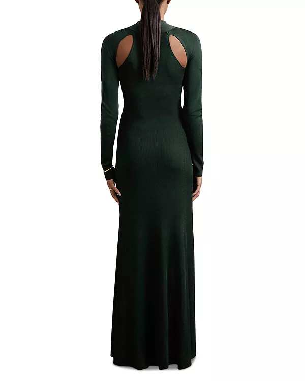 Вязаное длинное платье Vivienne с вырезами Reiss, зеленый