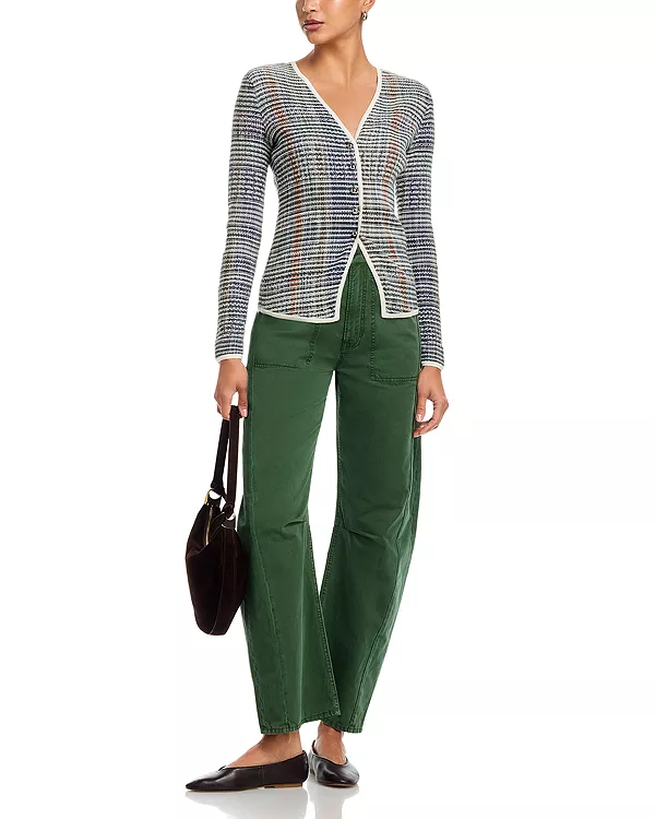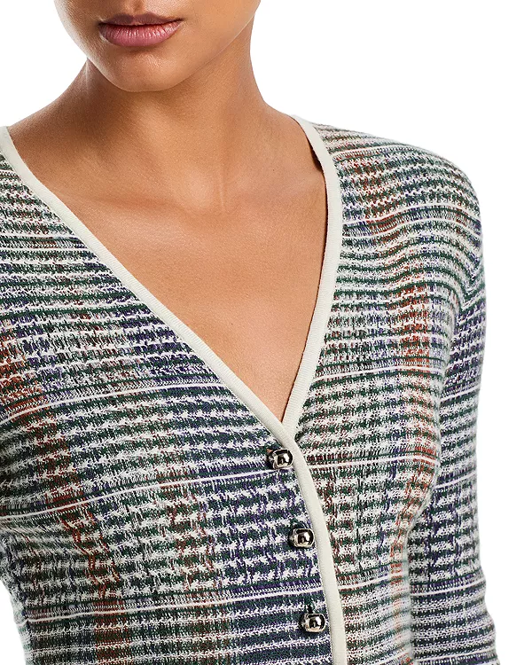 Бренд: Veronica Beard Цвет: мультиколор Идеальный, мягкий крой. Модель Nadialine от Veronica Beard выполнена из роскошного эластичного трикотажа с твидовой отделкой, сочетающего в себе структуру жакета и удобство кардигана. Приталенный силуэт подчеркивает талию, V-образный вырез, разрезы по низу и съемные плечевые подкладки дополнительно улучшают форму. Образ завершают эффектные серебряные пуговицы.
