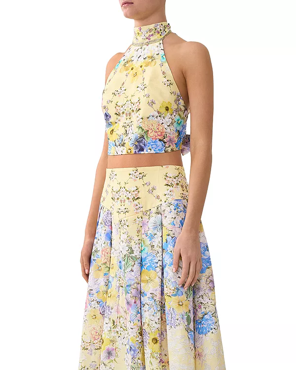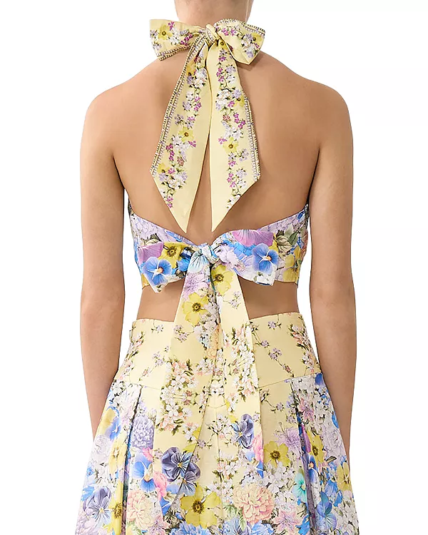 Шелковый топ с завязками на шее Camilla, мультиколор