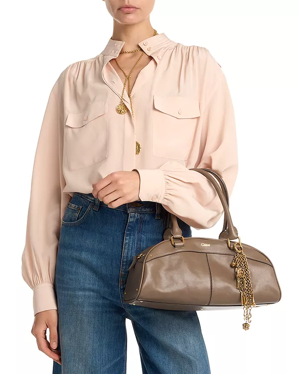 Кожаная сумка для боулинга Chloé, бежевый 283 619₽