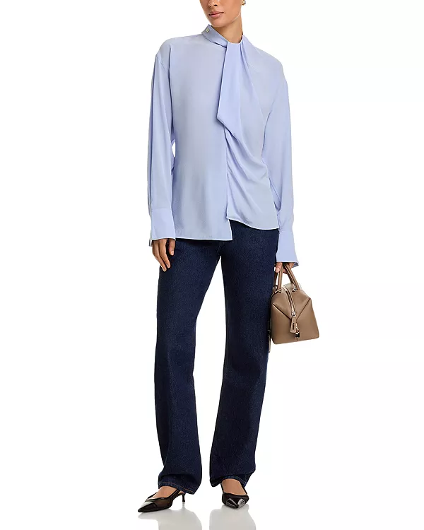 Блузка с шелковой драпировкой Victoria Beckham, синий 24 223₽