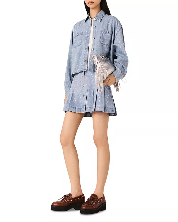 Короткая джинсовая рубашка со стразами Maje, синий
