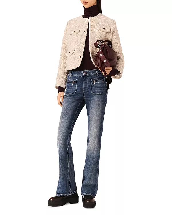 Короткий твидовый жакет из букле Maje, белый 39 823₽