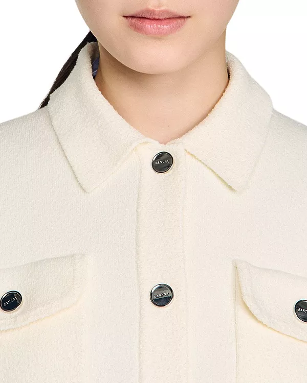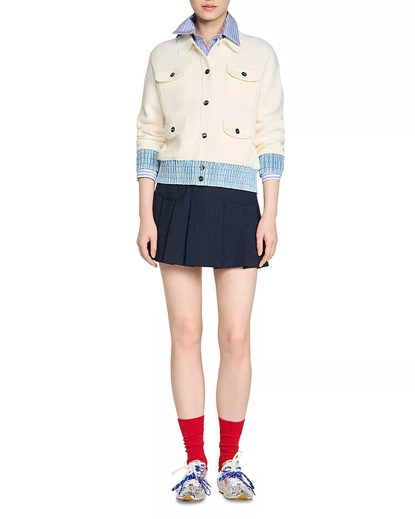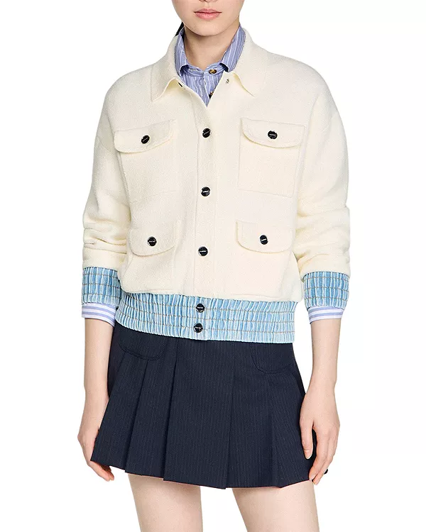 Кардиган Madeen с джинсовой отделкой букле Sandro, белый 51 797₽