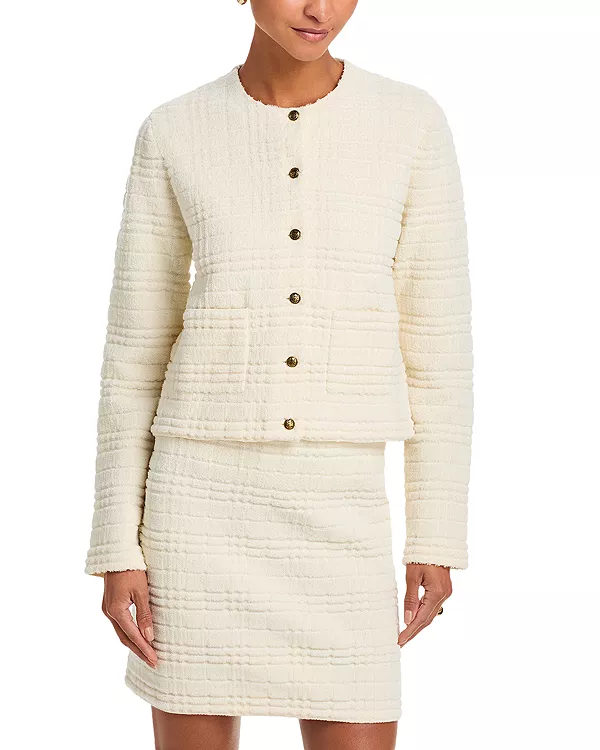 Легкий жакет из шерстяной смеси, связанный приятным на ощупь махровым узором в клетку. Куполообразные пуговицы имеют антикварную отделку и украшены эмблемой Burberry в виде буквы B, по бокам которой изображена пара единорогов, вдохновленная архивным гербом, найденным на личных столовых приборах Томаса Берберри.