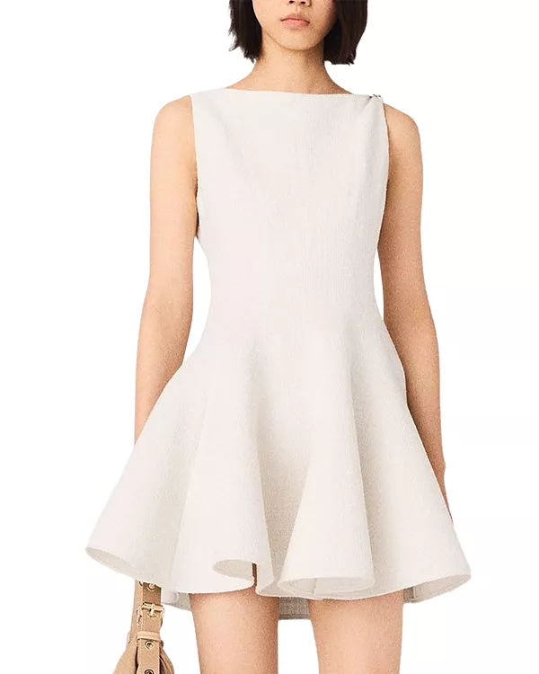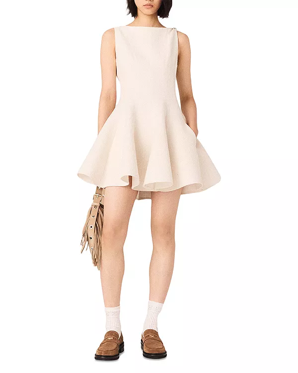 Возвращение к элегантности, где каждая деталь подчеркивает свободу движений и изысканность, платье-скейтер от Maje дополнено графичным кроем и серебристым украшением на плече, сочетая в себе утонченность и характер.