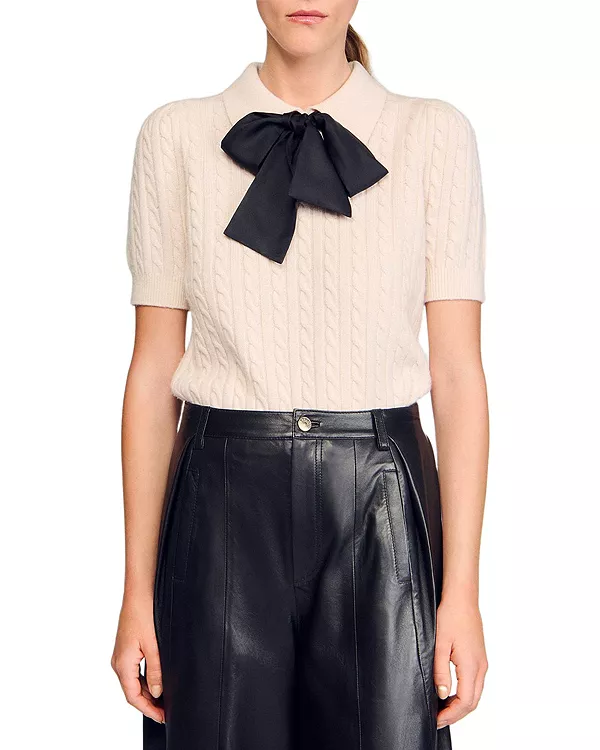 Вязаный свитер с воротником-поло Sandro, белый 39 202₽