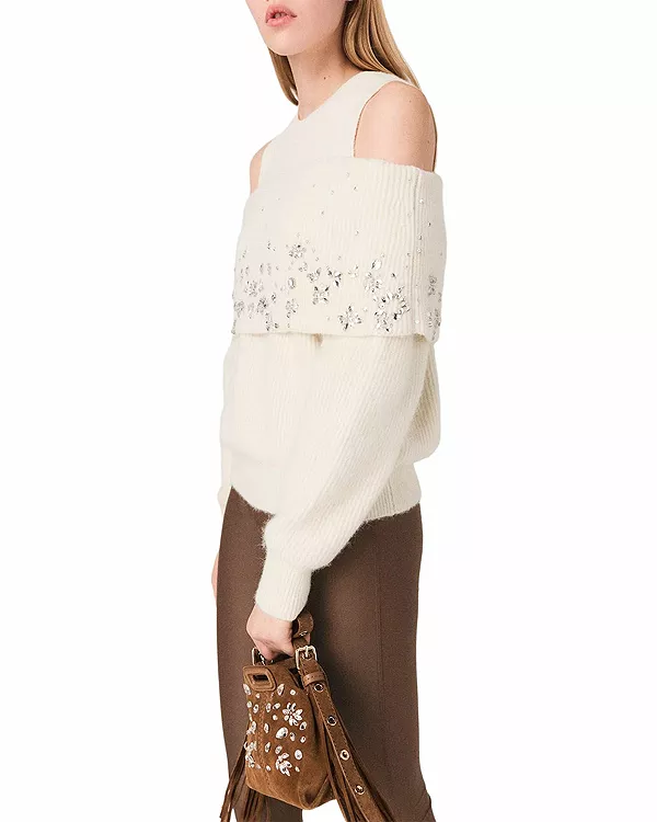 Свитер Marvela с открытыми плечами и круглым вырезом Maje, белый