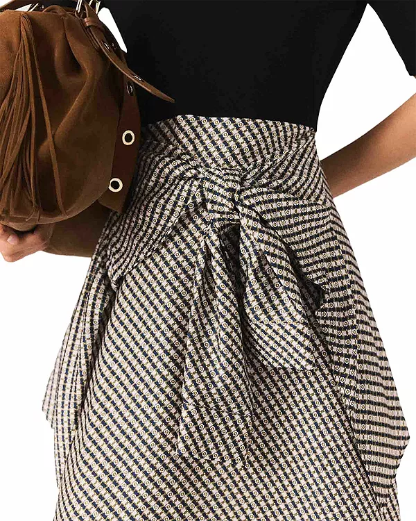Контрастная атласная юбка с завязкой спереди
