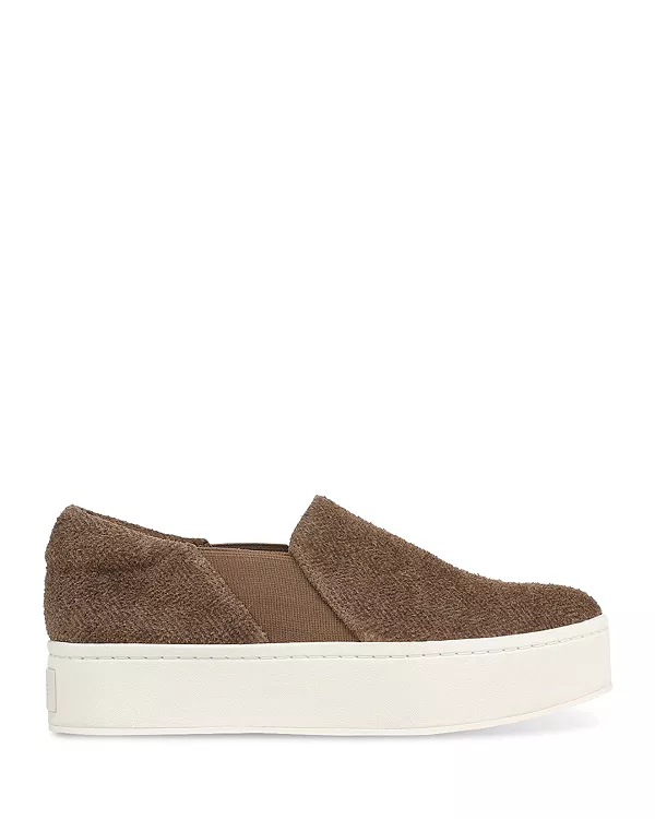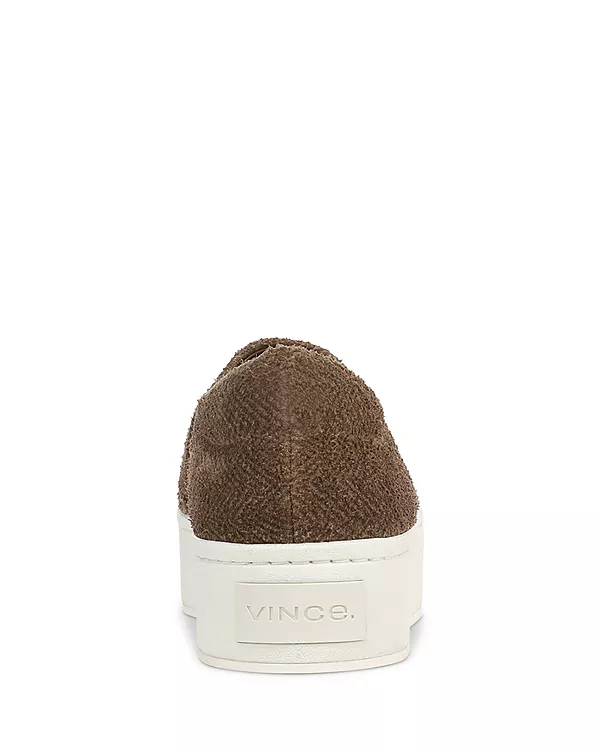 Роскошные замшевые слипоны от Vince с двойной толстой резиновой платформенной подошвой, которая имеет углубление для обеспечения легкости.