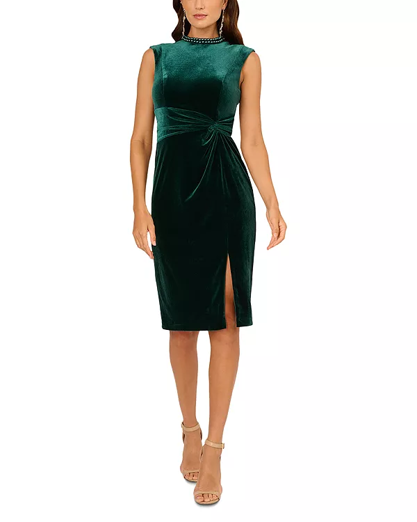 Платье из бархата с украшениями Adrianna Papell, зеленый