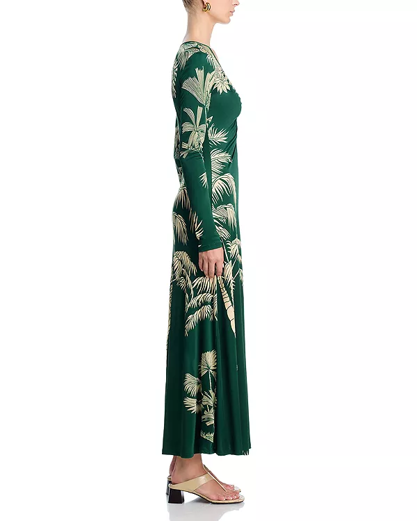 Это платье от Johanna Ortiz длиной до щиколотки выполнено из блестящего трикотажа и имеет глубокий V-образный вырез, замысловатый принт и струящийся силуэт. Это вневременной и универсальный силуэт от JO.