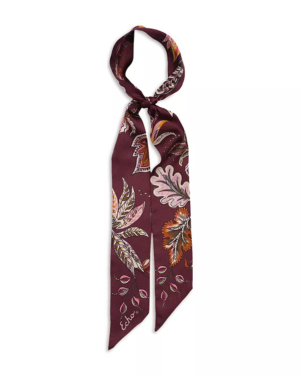 Шелковый шарф с лентой в виде падающих листьев Echo, фиолетовый