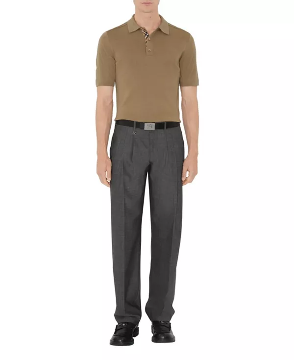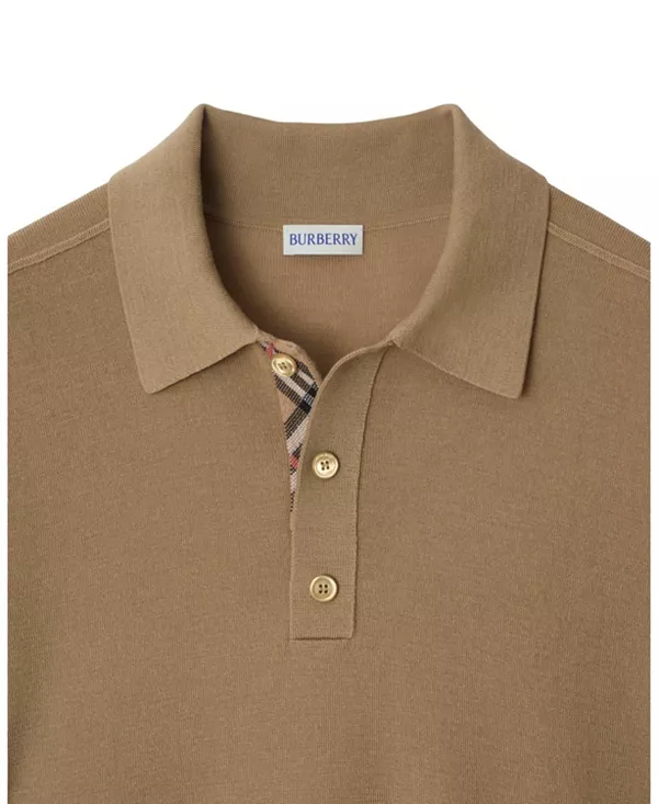 Рубашка-поло из легкой шерсти, приталенного кроя. Модель отличается изысканной отделкой в клетку Burberry на планке.