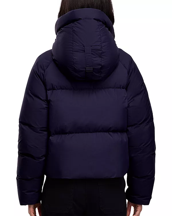 Особенности: Регулируемый капюшон с наполнителем из пуха Длинные рукава, манжеты из трикотажной резинки Планка со скрытой застежкой на кнопках поверх двусторонней молнии Внутренний шнурок по низу Два кармана для рук на молнии с флисовой подкладкой, один карман на молнии на рукаве, один внутренний накладной карман Внутренние лямки для переноски без помощи рук Сделано в Канаде
