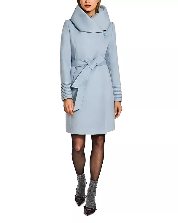 Прямой крой, затянут на талии поясом, длина до середины бедра