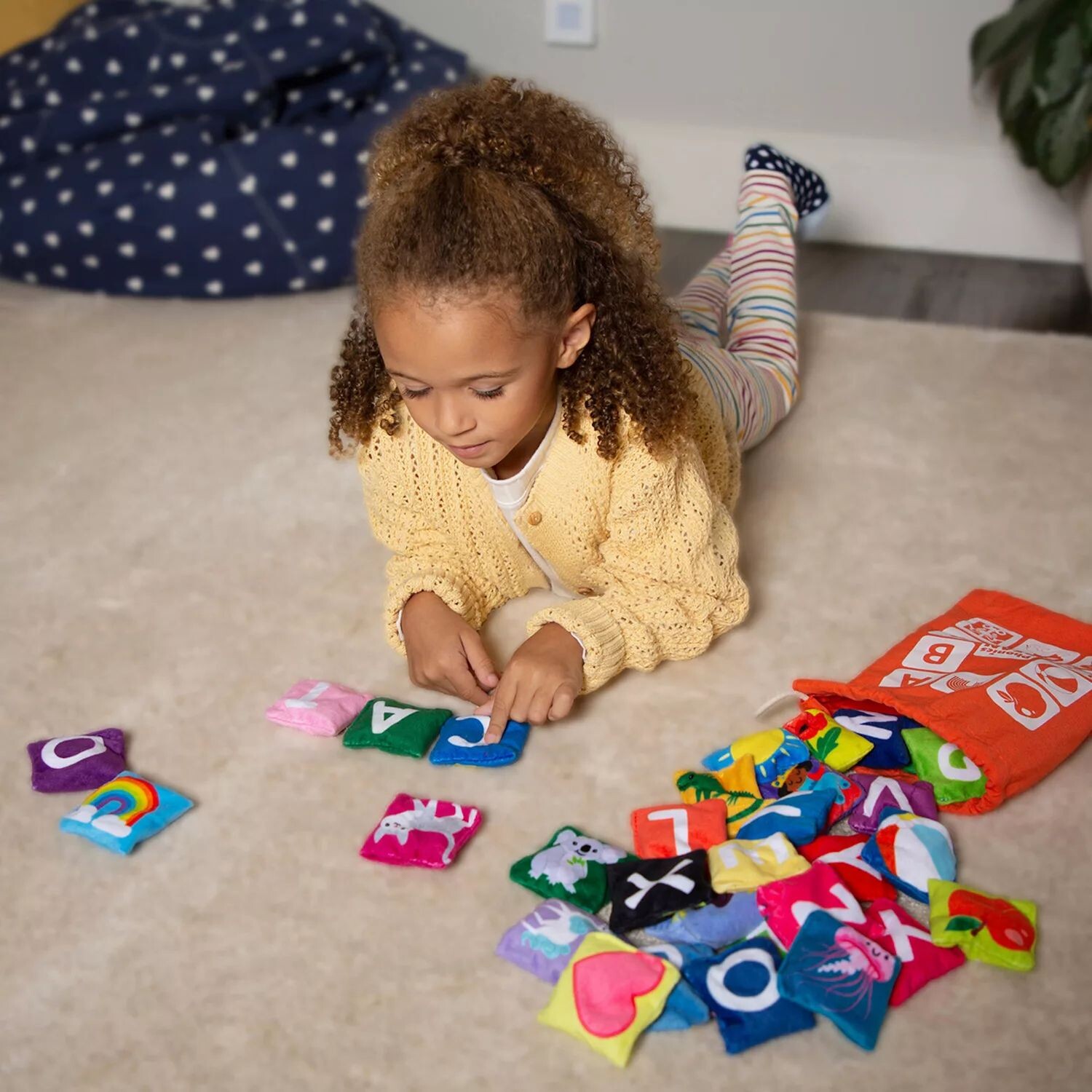 Компания Educational Insights предлагает дошкольникам практичные кресла-мешки, которые помогут им «уловить» названия букв и звуки с помощью прочного набора из 26 мешков с фасолью, на каждом из которых напечатана картинка, представляющая звук буквы. .