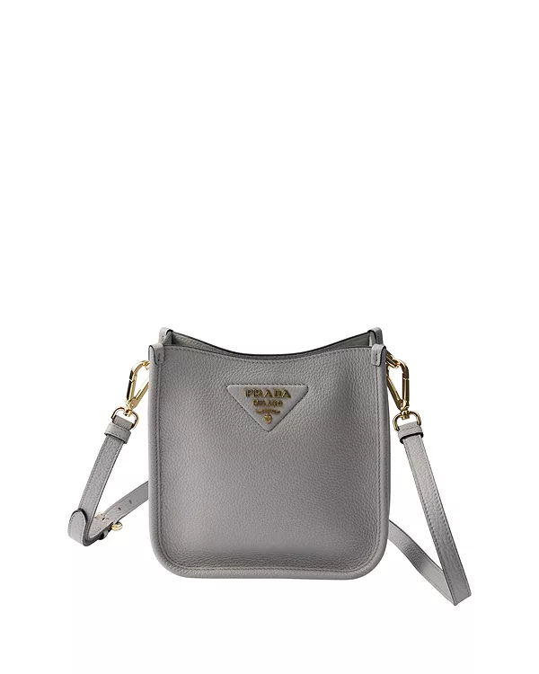 Миниатюрная кожаная сумка через плечо Prada, серый