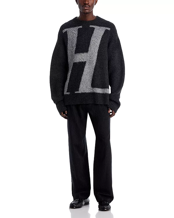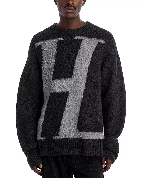 Свитер с круглым вырезом и логотипом HL Helmut Lang, серый 47 099₽