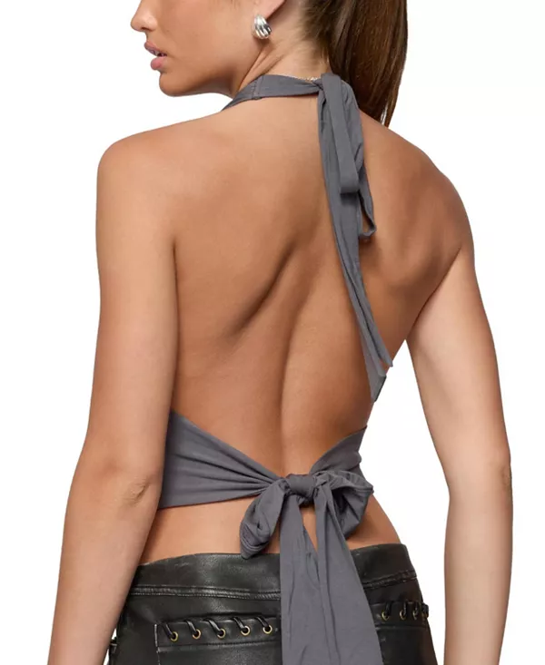 Топ-Халтер без спинки с металлическим кольцом Nessie Edikted, серый