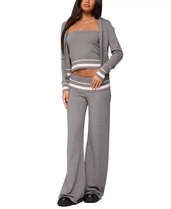 Вязаное худи на молнии в полоску Kaliya Edikted, серый