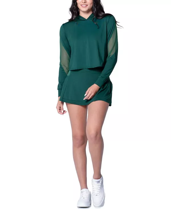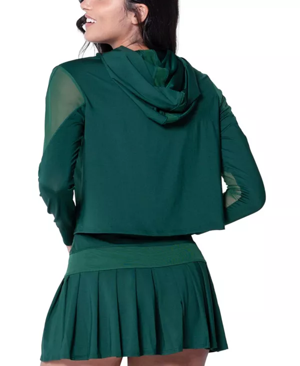 Для спортивных женщин, которые любят худи укороченного кроя. Эта забавная зеленая толстовка с сетчатыми вставками в виде гоночных полосок на рукавах и капюшоне выполнена из нашей легкой спортивной трикотажной ткани. Она обязательно станет вашей новой любимой толстовкой.