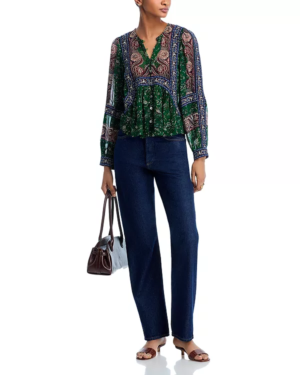 Топ с длинными рукавами Melba с принтом Sea, зеленый