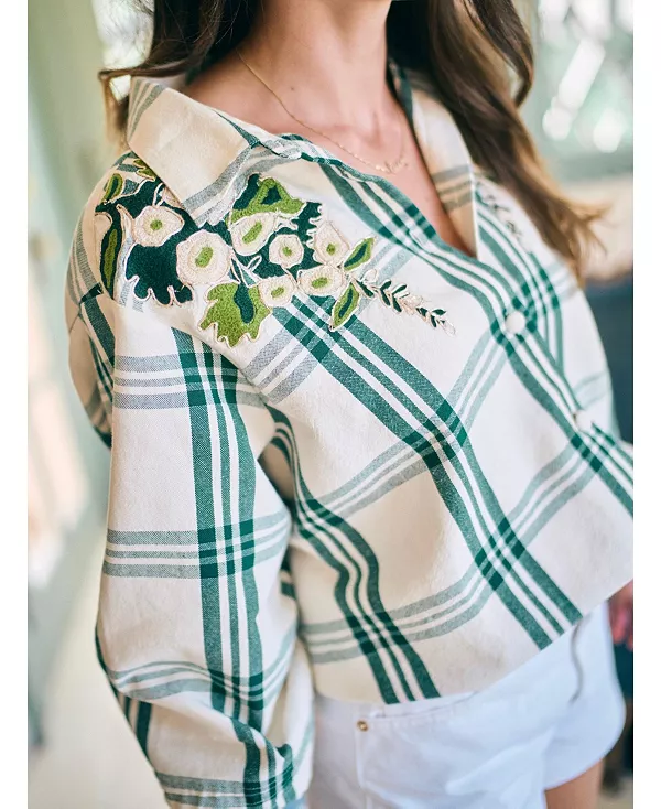 Бренд: Eddy Цвет: зеленый Рубашка Butler - это сочетание классики и современных интерпретаций. Это рубашка, которую вы будете носить снова и снова. Классическая клетчатая рубашка на пуговицах с изюминкой в виде вышитых цветочных узоров (созданных Larsen McDowell) на плечах. Свободный, слегка оверсайз крой позволяет заправлять ее в брюки, носить с поясом или оставлять свободной в зависимости от настроения.